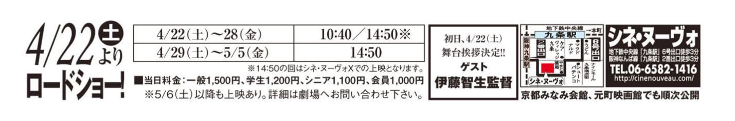 大阪シネ・ヌーヴォでの上映詳細は以下の通りです! 伊藤智生監督は、初日と二日目、舞台挨拶に立ちます。 最新ニュース! よかったらシェアしてね! URLをコピーしました! URLをコピーしました! 神戸 元町映画館 でのリバイバル上映詳細 東京 キネカ大森 でのリバイバル上映が決定! この記事を書いた人 gondola 関連記事 〈緊急告知〉シアターギルド代官山 大スクリーンに再び!『ゴンドラ』デジタルリマスター版再上映!≪伊藤智生 監督のトークショー付き≫ 2023年4月22日 〈上映のお知らせ〉2022年4月30日(土)~ 5月6日(金) に、シネマハウス大塚で 開催される「女優 木内みどり特集」にて3回上映決定! 2022年3月30日 〈緊急告知〉シアターギルド代官山で 「ゴンドラ」再上映決定! 2021年12月3日 ≪伊藤智生監督トークショー付き≫『ゴンドラ』特別上映のお知らせ 2021年10月4日 【配信決定】ネット配信・レンタル・オンエア等が始まりました! 2020年3月5日 DVD&Blu-ray発売記念 追悼 : 木内みどりさん 特別上映決定! 2019年12月4日 DVD&Blu-ray 販売のご案内 2019年8月26日 佐々木すみ江さん追悼上映のお知らせ 2019年3月10日