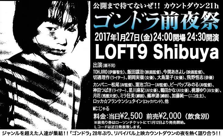 【「ゴンドラ」公開直前イベント開催決定!超豪華出演者多数!!】 <「ゴンドラ」前夜祭 公開まで待てないぜ!!カウントダウン21h> 2017/1/27(金)深夜 LOFT9 Shibuya 詳細はこちら http://www.loft-prj.co.jp/schedule/loft9/56482 -
