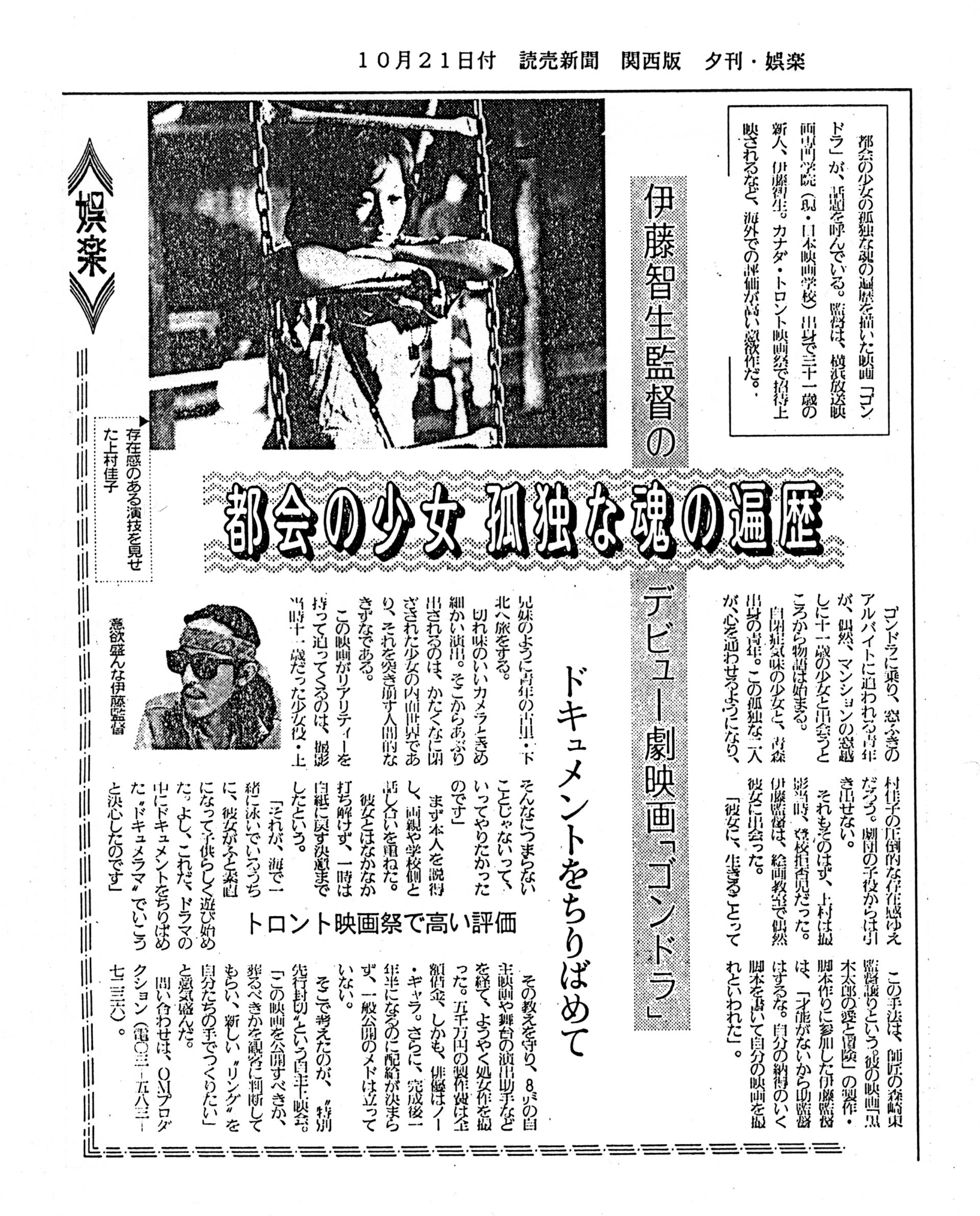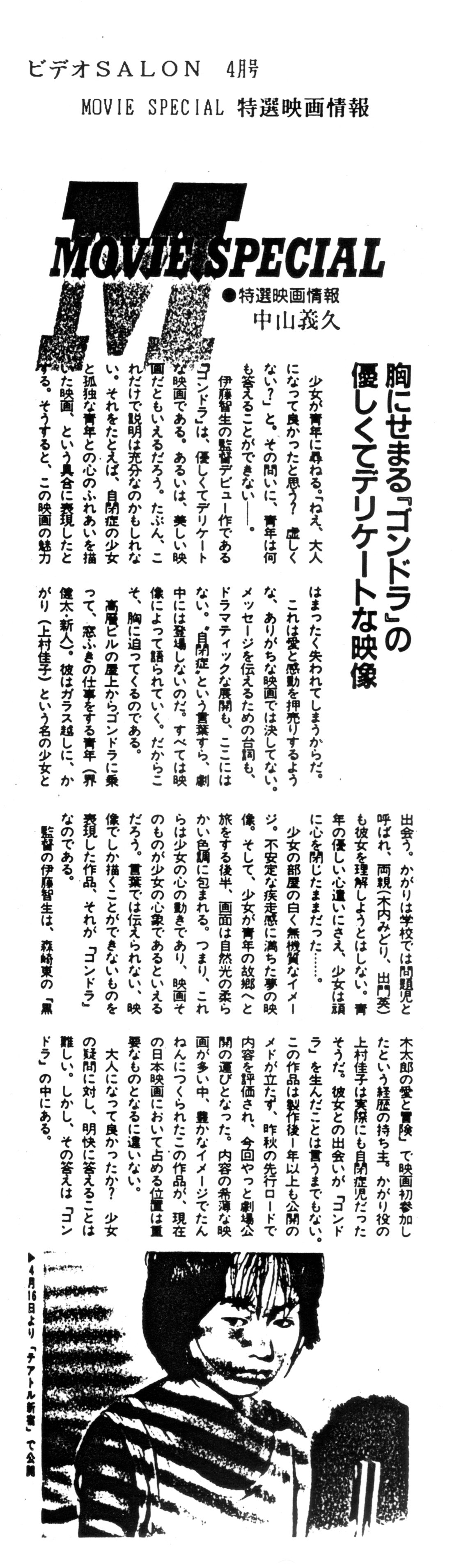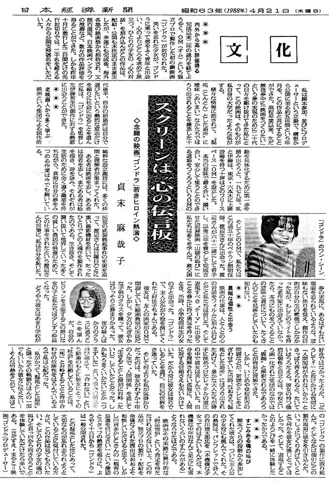 1986年4月に完成してから1988年4月の劇場公開までの間に出た「ゴンドラ」関連の記事の一部をご紹介しています(まだまだスキャニングが終わりません)