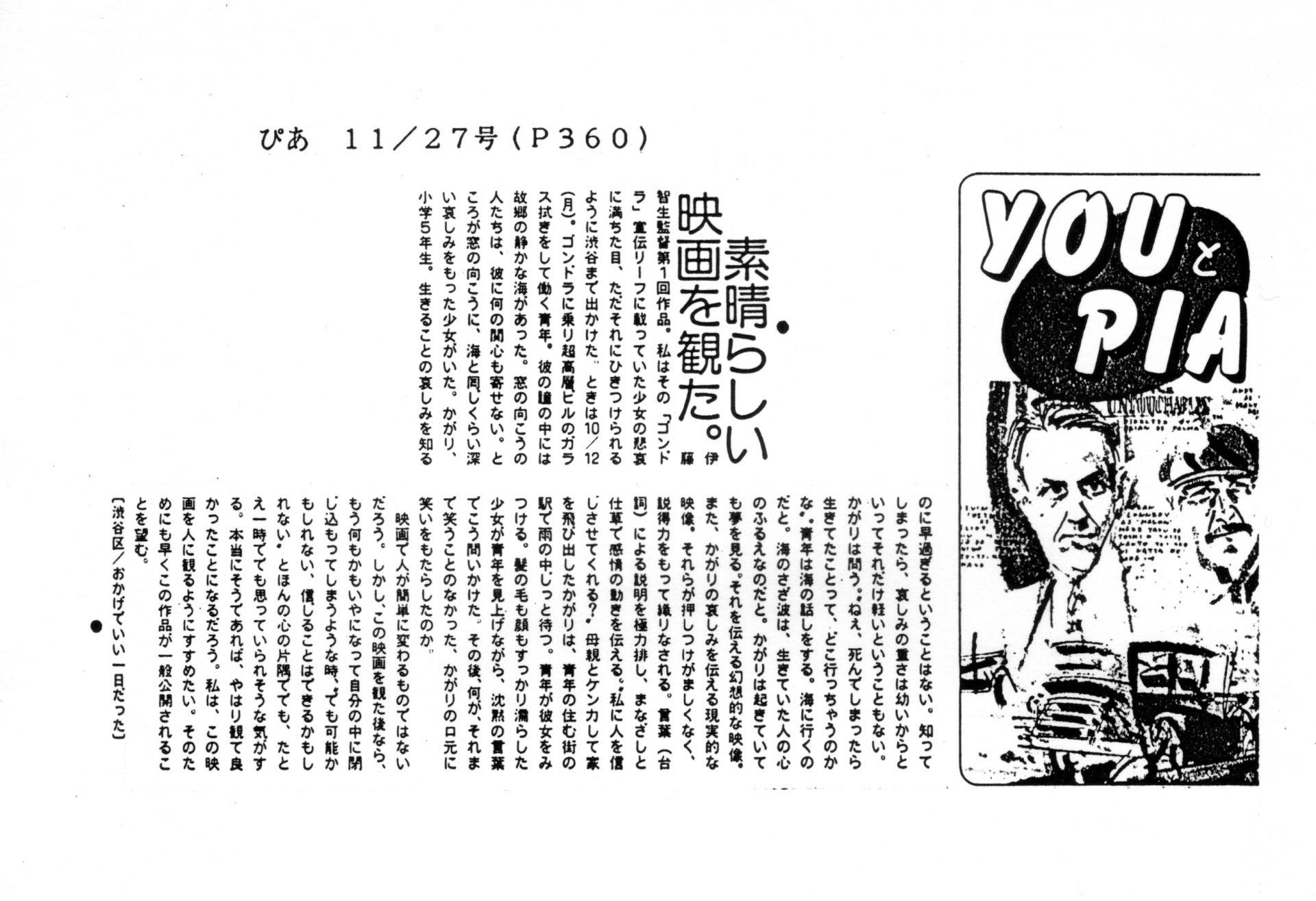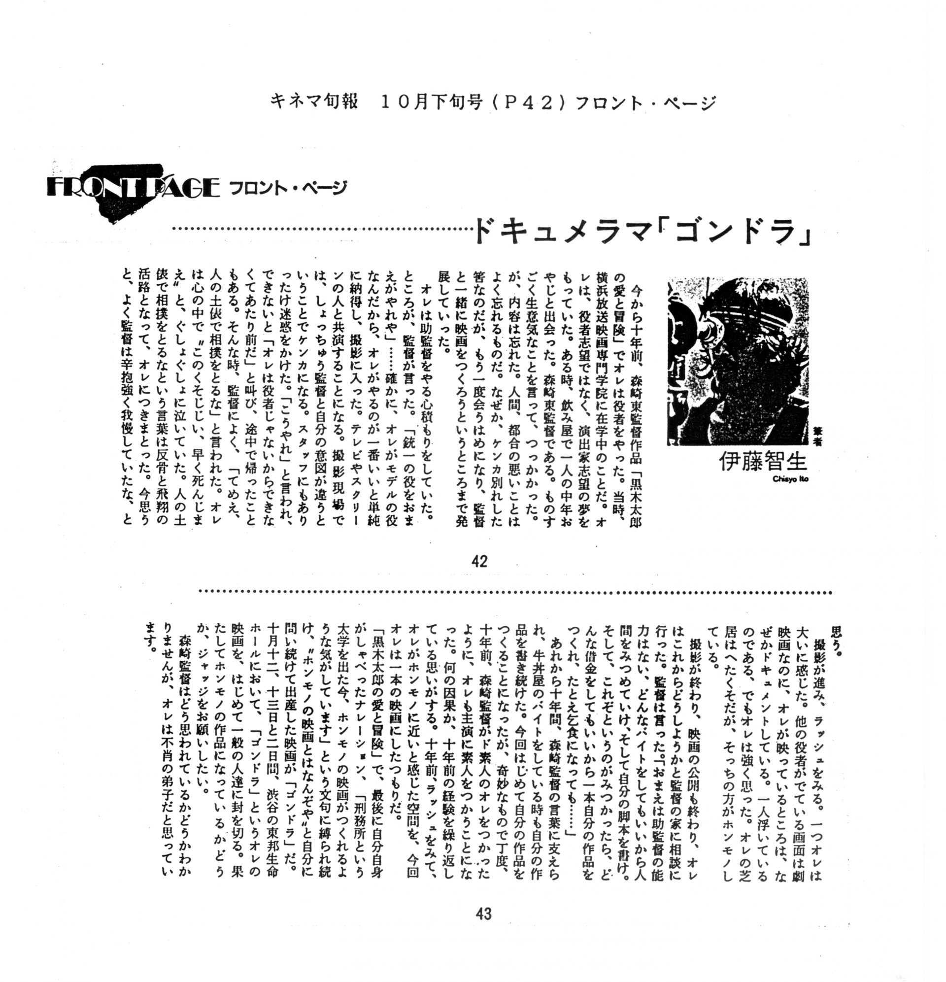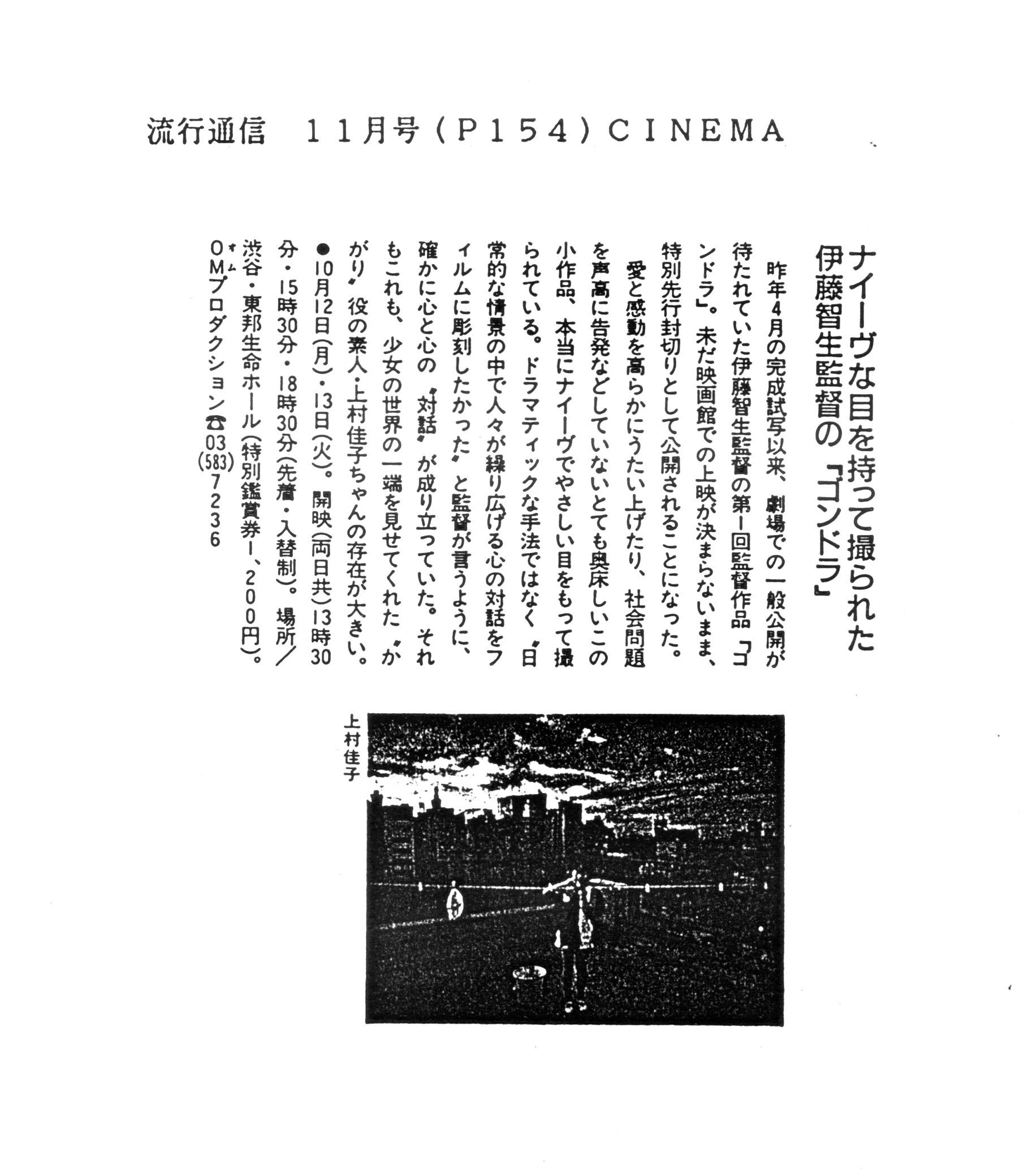 1986年4月に完成してから1988年4月の劇場公開までの間に出た「ゴンドラ」関連の記事の一部をご紹介しています(まだまだスキャニングが終わりません)