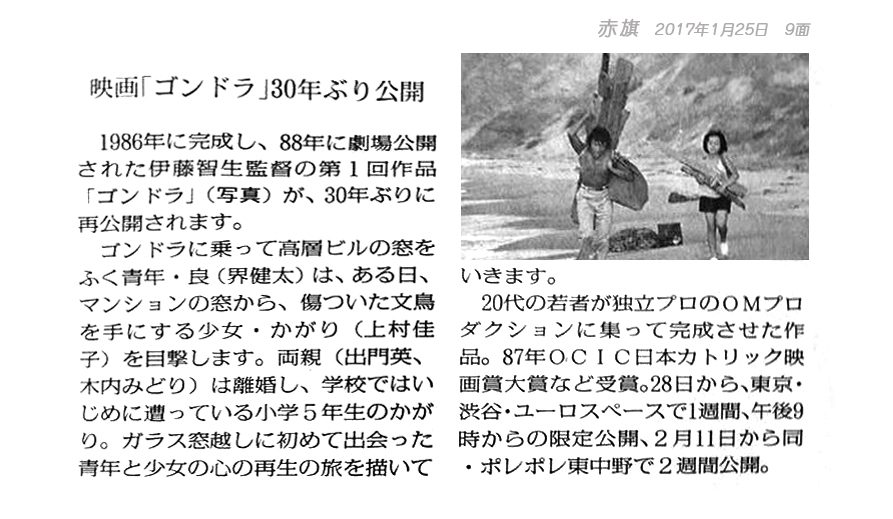 30年前ー”静かな騒動”を巻き起こした幻の『ゴンドラ』が再上映!伊藤智生監督に聞く?